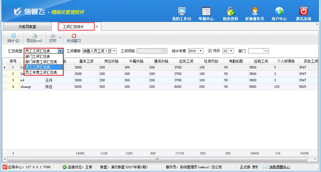 工資匯總統計和計件工資匯總表中可按年度和部門進行匯總工資記錄