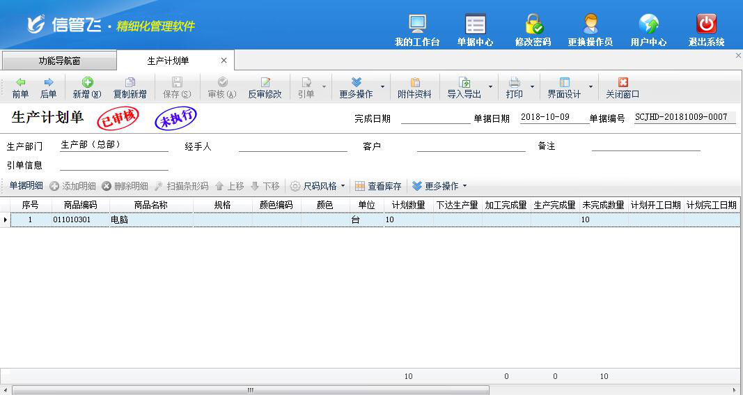 生產(chǎn)計(jì)劃單,用于管理工廠的生產(chǎn)指標(biāo)和生成任務(wù)計(jì)劃,通過(guò)生產(chǎn)計(jì)劃單可以使生產(chǎn)活動(dòng)有計(jì)劃、有步驟的進(jìn)行。