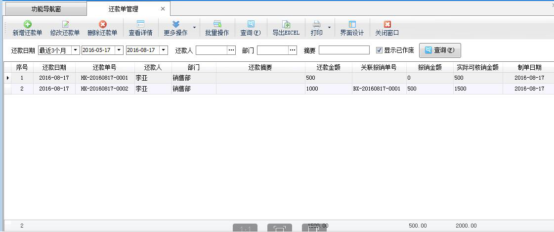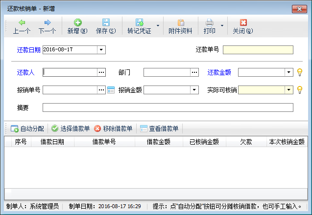 注:還款單管理可以增加費用報銷單來進行統一管理。