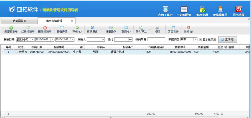 | 5 | 更多操作 | 點擊“更多操作”按鈕,下拉列表下含:反審報銷單、作廢報銷單、查看日記賬憑證操作。 |