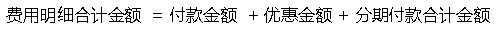 付款金額:付款金額+優惠金額應該等于單據明細匯總的各項費用金額合計(分期付款情況下除外)。