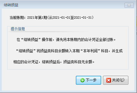 ????② 期末結賬前,請先進行結轉損益操作,否則無法執行期末結賬操作。