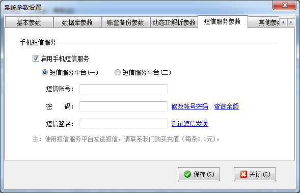 ????手機短信服務為增值服務,購買后可以發送業務通知短信、登錄驗證碼短信等,短信帳號和密碼可以在系統參數中配置。短信服務按條收費,如需使用可聯系客服充值購買。