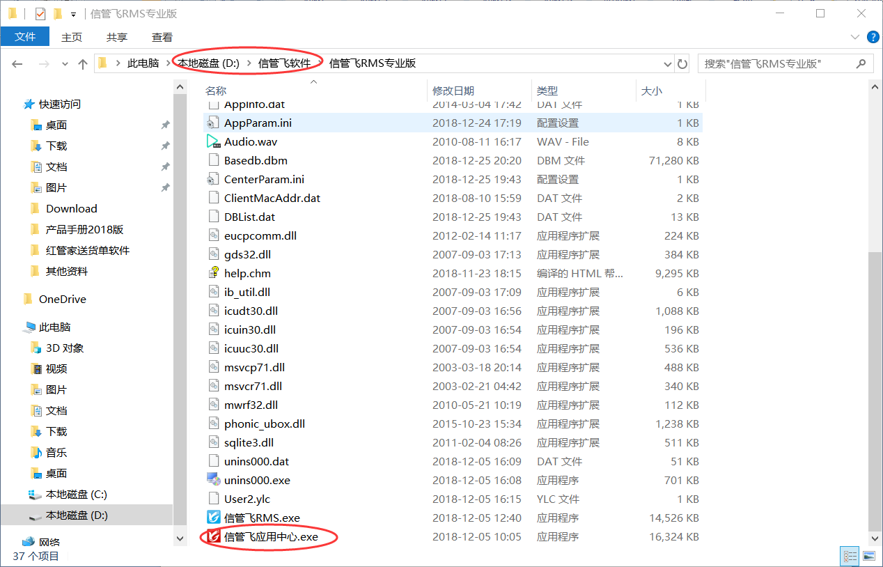 ????在原主機(jī)電腦上,先退出信管飛客戶端軟件程序和應(yīng)用中心程序,然后將程序目錄(默認(rèn)軟件是安裝在 D:\信管飛軟件)用 U 盤復(fù)制到新電腦上。在新主機(jī)電腦的程序目錄下,找到信管飛應(yīng)用中心.exe 文件,點(diǎn)擊運(yùn)行應(yīng)用中心。