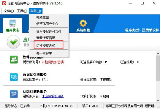 ????加密鎖設備如果長時間使用可能有損壞情況,目前我們支持加密鎖授權更換為授權形式授權,授權目前免費更換。本文以“信管飛送貨單軟件”為例,示范下如何變更授權形式?