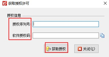 ????3、獲取授權,軟件授權服務顯示“未獲取授權許可”后,在工具欄“幫助”按鈕下點擊“獲取授權許可”復制新分配的授權號和授權碼信息,點擊“獲取授權”,成功后退出重啟應用中心,則授權完成。如下圖: