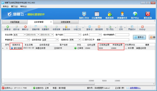 ????信管飛出納記賬軟件可登記客戶和供應商的應收應付款記錄,對于用戶出現(xiàn)部分收款的情況,軟件中如何處理?本文以“信管飛出納記賬軟件”為例進行示范下如何部分結(jié)銷應收款?