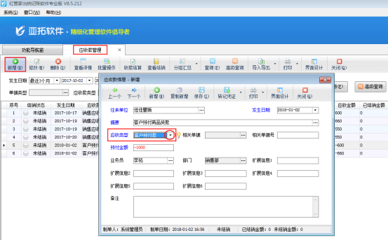 # 6.3.32 亞拓管理軟件中如何錄入客戶預付款