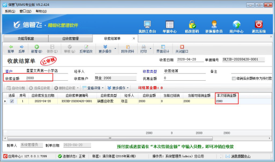 # 6.3.27 信管飛RMS軟件中如何對應收款進行收款結(jié)算?