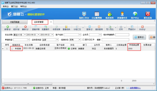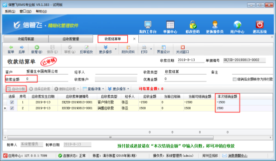 ????結(jié)算單審核完成后會影響應收款的結(jié)銷狀態(tài)。如果需要按單據(jù)進行分批結(jié)銷可參考此文章:信管飛RMS 軟件如何按單據(jù)部分結(jié)銷應收款?