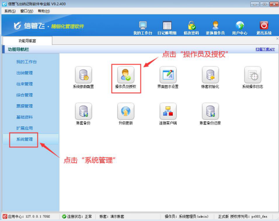 ????信管飛出納記賬軟件、信管飛RMS標(biāo)準(zhǔn)版和專業(yè)版都支持設(shè)置操作員不可查看其他人員錄入的出納憑證的權(quán)限,本篇文章以信管飛出納記賬軟件專業(yè)版為例詳細(xì)介紹一下如何設(shè)置操作員不可查看其他人員錄入的出納憑證。