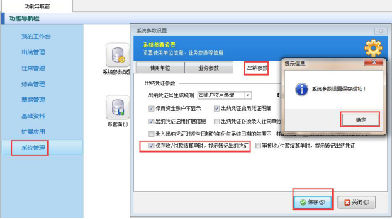 ????在“功能導(dǎo)航窗”點(diǎn)擊“系統(tǒng)管理”—》“系統(tǒng)參數(shù)配置”,啟用“業(yè)務(wù)參數(shù)”中的“出納憑證審核時(shí)自動審核相關(guān)的結(jié)算單”參數(shù),如下圖所示:
