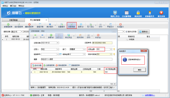 # 6.4.63 出納記賬軟件如何在員工借款管理界面進(jìn)行還款核銷?