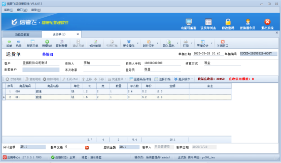 在當今快節(jié)奏的商業(yè)環(huán)境中,一款能夠靈活應對各種計算需求的進銷存管理軟件顯得尤為重要。信管飛系列軟件,如RMS進銷存管理軟件、送貨單軟件及倉庫管理軟件等,均支持開單時根據單價與數量自動計算金額。而針對更復雜的計算場景,軟件更提供了自定義計算公式的功能。本文將以送貨單軟件為例,詳細介紹如何自定義計算公式。 觀看演示視頻,快速上手自定義計算公式的設置方法。鏈接已備,點擊即學。 在送貨單軟件中,用戶可輕松配置如“長*寬*數量=平方數,平方數*單價=金額”等個