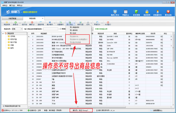 在企業(yè)的日常運營中,商品信息的安全至關重要,一旦泄露,可能會給企業(yè)帶來不可估量的損失。信管飛軟件敏銳洞察到這一需求,貼心提供可設置操作員不可導出商品信息的功能,為企業(yè)數據安全保駕護航。 以往,軟件中的商品信息可能因操作員權限設置不當而面臨泄露風險。有些操作員或許因疏忽或惡意,將商品信息導出并傳播,導致企業(yè)商業(yè)機密外泄。信管飛軟件深刻認識到這一隱患,通過精細化的權限管理,為企業(yè)提供了靈活且安全的解決方案。 企業(yè)管理人員只需登錄信管飛軟件,在系統(tǒng)設置中輕松找到操作員及授權功能。在這里,能夠