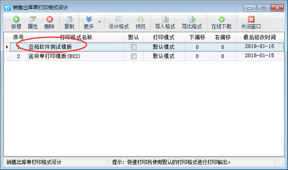 亞拓管理軟件、紅管家倉庫管理軟件、紅管家送貨單軟件、紅管家出納記賬軟件等軟件內(nèi)內(nèi)置有多個(gè)打印格式模版,并且都支持自定義打印格式模版,可以更方便、靈活的定制打印輸出內(nèi)容和格式,有時(shí)我們會(huì)根據(jù)不同的情況用到不同的單據(jù)打印格式模版,為了更好的區(qū)分,本篇文章我們來介紹一下如何修改打印格式模版名稱? 以亞拓管理軟件為例,示范一下如何修改打印格式模版名稱,打開一個(gè)已保存的銷售出庫單,在工具欄點(diǎn)擊“打印”—》“打印格式設(shè)計(jì)”(圖一)打開“銷售出庫單打印格式設(shè)計(jì)”窗口(圖二),選擇“送貨單打印模版(B01)”,然后在工具欄點(diǎn)擊“屬性”按