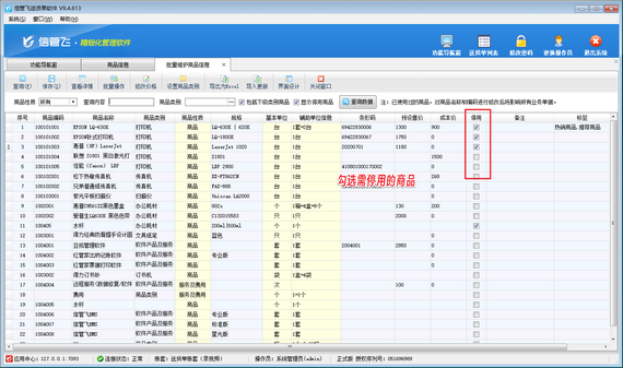 在當(dāng)今商業(yè)管理中,高效的商品信息管理至關(guān)重要。信管飛系列軟件,包括RMS、倉庫管理軟件及送貨單軟件,均提供了強(qiáng)大的商品信息管理功能。其中,對(duì)于不再使用的商品,用戶可以輕松將其設(shè)置為停用狀態(tài),確保開單過程無誤。本文將重點(diǎn)介紹在信管飛送貨單軟件中如何批量停用商品,提升工作效率。 在實(shí)際操作中,面對(duì)大量需要停用的商品,逐一處理無疑會(huì)耗費(fèi)大量時(shí)間。為此,信管飛送貨單軟件提供了便捷的批量處理功能。用戶只需進(jìn)入“基礎(chǔ)資料”下的“商品信息”界面,點(diǎn)擊“更多操作”—》“批量維護(hù)商品信息”即可進(jìn)入批量維護(hù)商品信息界面。 &nbs