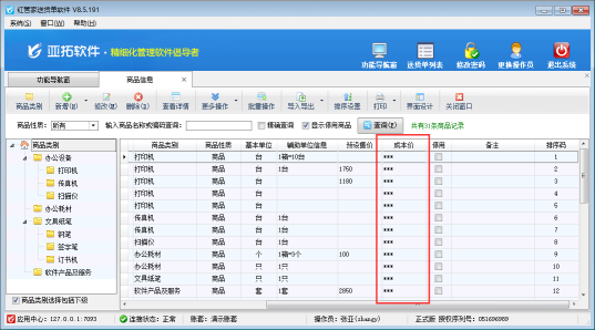 亞拓管理軟件、紅管家倉庫管理軟件及紅管家送貨單軟件內都可以設置多個操作員并對操作員賬號設置權限,部分用戶不希望員工賬號可以查看到商品成本價格,如何設置呢?本篇文章以紅管家送貨單軟件為例詳細介紹一下送貨單軟件內如何設置操作員不可查看商品成本價? 在功能導航窗點“系統管理”→“操作員及授權”即可進入“操作員管理及授權”界面,選中操作員賬號,在“其他操作權限”界面將“查看商品成本價”權限打鉤取消,如下圖一所示,設置操作員賬號“張亞”不可查看商品成本價格。圖一 操作員管理及授權界面 設置完成之