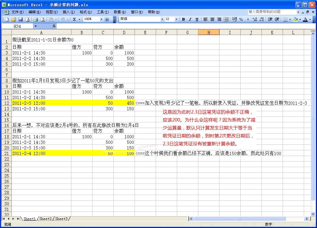 亞拓軟件的出納記賬系統,因其較為全面的功能和相對靈活的操作模式,目前已經應用于數百家企事業單位的財務核算、資金管理、往來帳結算等領域,成為財務出納人員管理賬務的好幫手。 大家在使用的過程中,偶爾會出現余額不正確的情況(這種情況出現的幾率非常小),進而會懷疑我們的軟件是不是不夠嚴謹,或者是否有什么漏洞。對此我們特意整理出一個案例,幫助大家還原此問題,并給出相應的解決辦法。 為了便于說明問題,我們假設一個較為簡單的例子:截至2011年1月31日24時,資金賬戶余額為0。下圖中上面為2月3日前正確的憑證。中間部分為