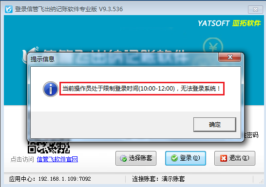 此文章演示視頻觀看鏈接:[InstallDir_ChannelDir]video/202301/1858.html 為了使用戶可以更好的管理公司賬套數據,信管飛RMS、信管飛出納記賬軟件、信管飛倉庫管理軟件都支持設置操作員的登錄限制,系統管理員可以自定義設置操作員登錄軟件的時間,設置后,操作員在受限制時間內則無法登錄軟件。 本文以信管飛出納軟件為例,介紹一下如何設置操作員登錄限制。登錄軟件,在功能導航窗選擇“系統管理”—》“操作員及授權”,進入“操作員管理及授權