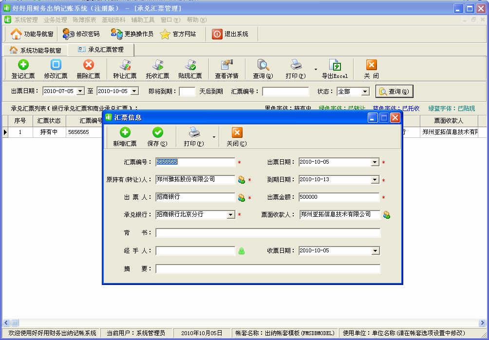 1、增加銀行(商業(yè))承兌匯票管理功能。