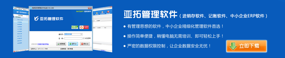 亞拓管理軟件(進銷存記賬軟件/ERP軟件/生產(chǎn)管理軟件)下載地址: