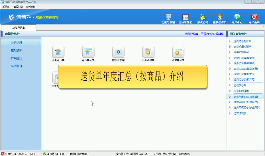 介紹送貨單軟件送貨年度匯總(按商品)的主要功能和操作步驟。