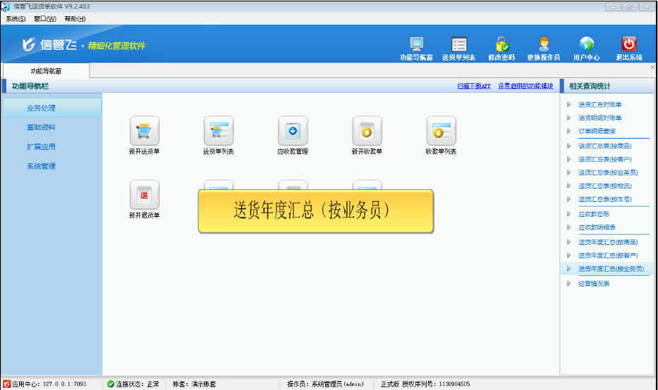 介紹送貨單軟件送貨年度匯總(按業(yè)務(wù)員)的主要功能和操作步驟。
