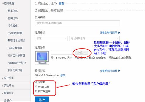 然后需要填寫應(yīng)用的基本信息,如下圖所示: