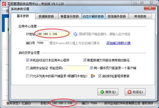 ②電腦的IP地址一般由路由器自動(dòng)分派,所以IP地址有可能會(huì)發(fā)生變化,這個(gè)時(shí)候客戶端電腦必須輸入新的主機(jī)電腦IP地址才可以登錄。(主機(jī)電腦如果也使用軟件,我們建議客戶端程序登錄的時(shí)候輸入127.0.0.1即表示本機(jī),這樣不管主機(jī)IP地址如何變化,至少主機(jī)電腦是可以一直登錄軟件的。)此外,也可以固定電腦的IP地址(相關(guān)文章:網(wǎng)絡(luò)版軟件固定主機(jī)電腦IP地址的方法)。如果是網(wǎng)絡(luò)版多臺(tái)電腦使用的話,建議固定主機(jī)電腦的IP地址(相關(guān)文章:網(wǎng)絡(luò)版軟件固定主機(jī)電腦IP地址的方法)。
