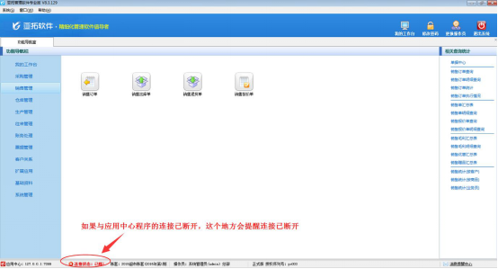 亞拓管理軟件、紅管家倉(cāng)庫(kù)管理軟件、紅管家票據(jù)打印軟件都包括客戶端程序和應(yīng)用中心程序兩個(gè)模塊,客戶端程序登錄系統(tǒng)時(shí),應(yīng)用中心程序是必須打開的。如果主機(jī)電腦(網(wǎng)絡(luò)版用戶插入加密鎖的電腦為主機(jī)電腦)關(guān)機(jī)或關(guān)閉應(yīng)用中心程序、程序出現(xiàn)異常等,客戶端程序與應(yīng)用中心的連接就會(huì)斷開。應(yīng)用中心程序再次正常運(yùn)行后,客戶端程序需要重新建立與應(yīng)用中心程序的連接。下面我們以亞拓管理軟件專業(yè)版為例介紹一下客戶端程序重連應(yīng)用中心程序的操作。