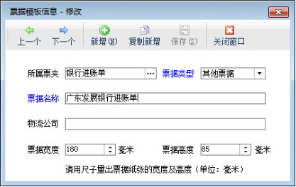 票據名稱:必填項,直接輸入票據模板的名稱。