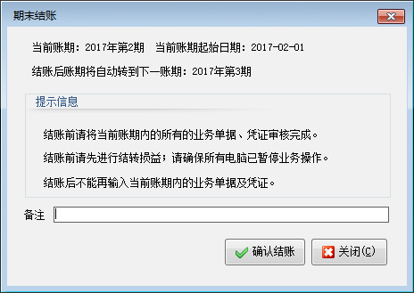 2、結賬前請先在本賬期內進行“結轉損益”操作。