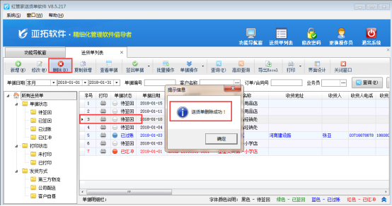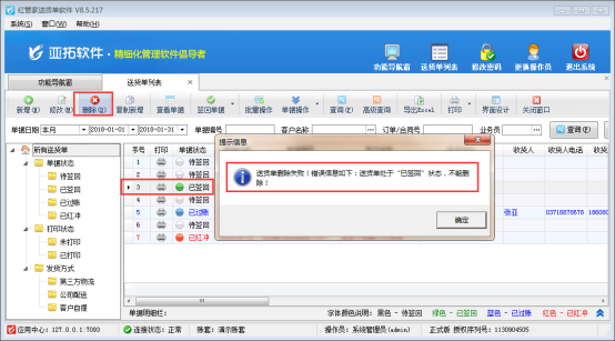 紅管家送貨單中內(nèi)置了一個(gè)簡(jiǎn)單的流程:待簽回(新開(kāi)單)-》已簽回(業(yè)務(wù)員送貨回來(lái)或者客戶已簽收快遞)-》已過(guò)賬(財(cái)務(wù)確認(rèn)已收到貨款),用戶可以單據(jù)變化選擇標(biāo)記單據(jù)狀態(tài),有時(shí)候會(huì)遇到需要?jiǎng)h除已簽回單據(jù)的情況。