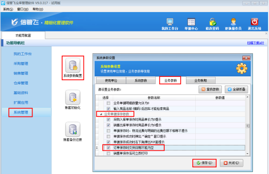 信管飛RMS(進銷存記賬軟件)、信管飛倉庫管理軟件、信管飛送貨單軟件等都可以設(shè)置訂單保存時交貨日期不能為空,本篇文章以信管飛倉庫管理軟件為例介紹一下如何設(shè)置訂單保存時交貨日期不能為空。