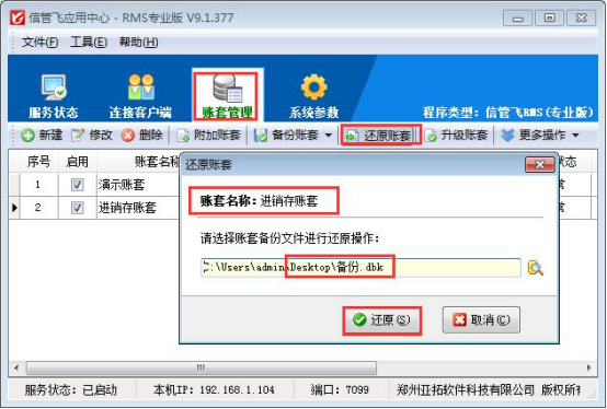 以信管飛RMS軟件為例,示范下如何新增賬套恢復(fù)之前賬套中的基礎(chǔ)資料信息。
