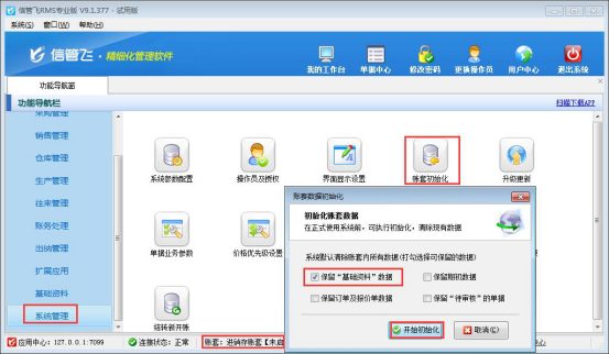 初始化賬套操作后,需要重新退出客戶端程序進(jìn)行重新登錄。