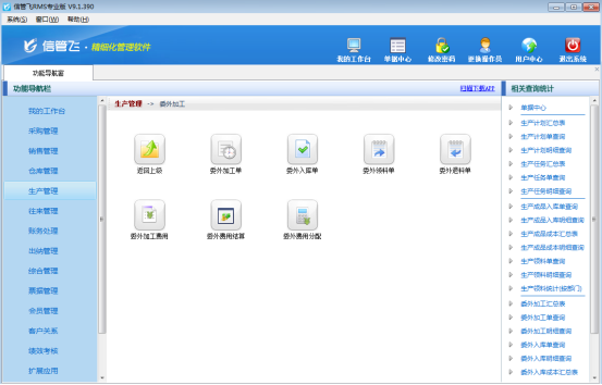實際的企業生產業務中經常會涉及委外代加工業務,有時候需要委托外部工廠幫我們生產一些配件,有時候需要幫忙生成半成品,然后委外生產的成品或半成品,再進入我們車間進行再加工(如包裝封箱、或二次加工等)。信管飛RMS標準版、專業版及以上版本可以購買 “委外加工管理”擴展功能模塊來管理此業務。