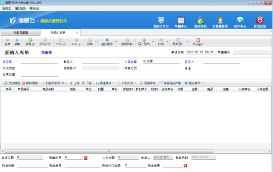 (1)首先我們采購原材料,在采購管理中開“采購入庫單”采購入庫原材料到我們的倉庫。(如果是直接運送到代加工廠,請增加一個虛擬倉庫如“代工廠倉庫”,原材料增加到這個操作,好處是:我們可以隨時掌握每次的材料消耗情況和剩余庫存情況)