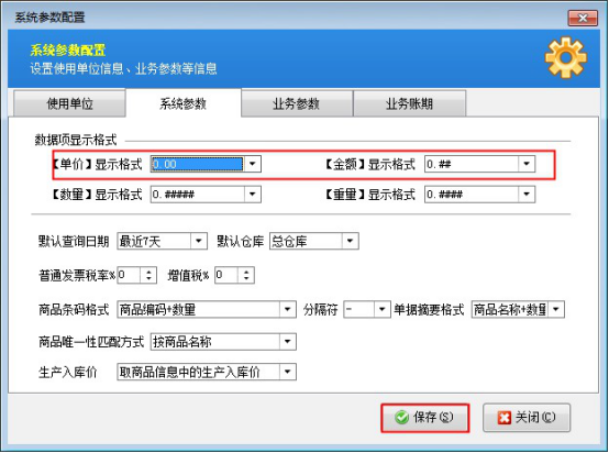 在系統(tǒng)參數(shù)中對(duì)“單價(jià)”、“金額”選擇相應(yīng)的顯示格式后點(diǎn)擊“保存”按鈕即可,在軟件中這些數(shù)據(jù)項(xiàng)的顯示格式會(huì)改變。如圖3所示設(shè)置后,在圖4的送貨單界面可看到相應(yīng)的數(shù)據(jù)項(xiàng)的顯示格式。