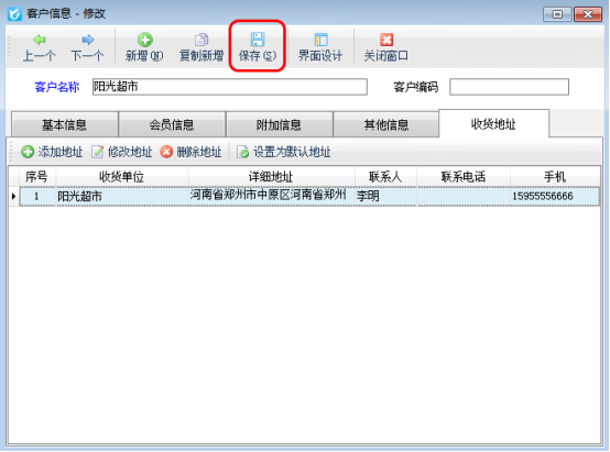 信管飛送貨單軟件、信管飛倉庫管理軟件、信管飛RMS開單時都可以錄入多個收貨地址,以滿足部分客戶有多個收貨地址的情況。下面我們以信管飛RMS為例介紹一下錄入多個收貨地址的具體的操作步驟。