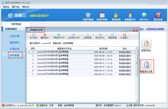 登錄軟件后,在功能導航窗點擊“系統管理”—“賬套備份還原”進入賬套備份還原界面,如下圖所示: