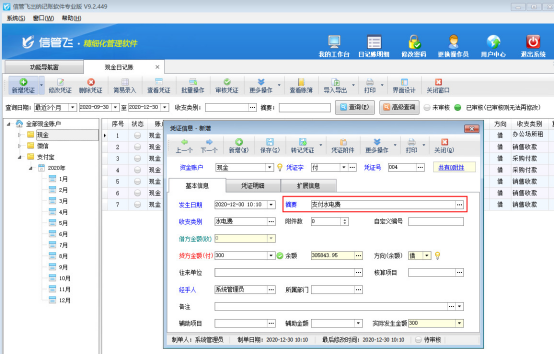 信管飛出納記賬軟件登記日記賬憑證時可以錄入憑證摘要信息,憑證摘要是必填項(xiàng),憑證摘要可以概要的說明憑證內(nèi)容,方便以后查找。我們以信管飛出納記賬軟件專業(yè)版為例,介紹一下出納記賬軟件如何按摘要統(tǒng)計?