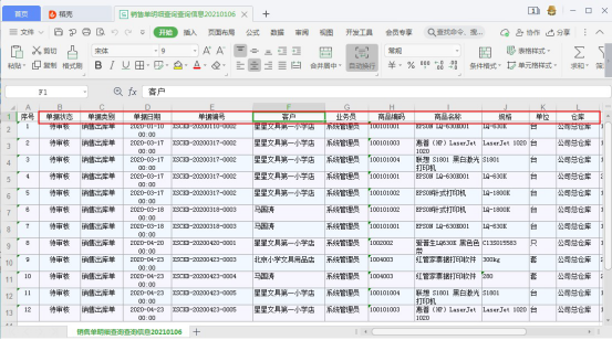 軟件導(dǎo)入Excel格式需要一定的樣式,可以在銷售管理—右側(cè)查詢統(tǒng)計(jì)下打開(kāi)“銷售明細(xì)查詢”表,導(dǎo)出Excel文件作為模板,把需要導(dǎo)入的數(shù)據(jù)整理到模板中,具體格式可參考下圖: