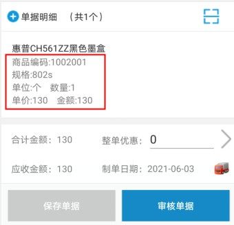 電腦端界面設計設置完成后,登錄手機APP,重新打開單據,可看到單據明細上已顯示“折扣率和折扣單價”,如下圖所示:
