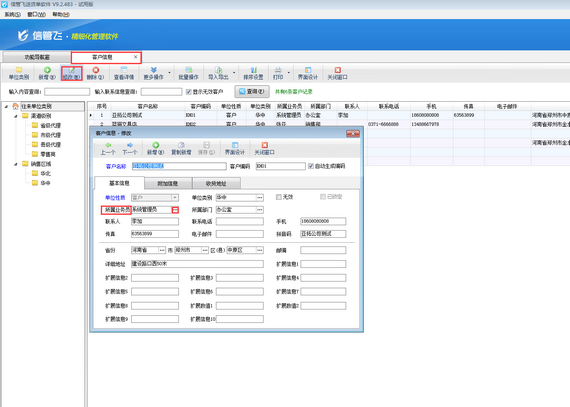 然后關閉修改客戶信息界面后,客戶信息中所屬業務員已修改成功。如下圖所示: