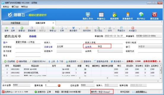 信管飛RMS軟件支持客戶和供應商設置所屬業務員,來管理業務員的業績情況。在開單選擇客戶后自動顯示默認的業務員和經手人,為了避免操作員開單選擇客戶或供應商后修改對應的業務員或經手人信息,軟件支持控制操作員不能修改業務員和經手人權限,本文以“信管飛RMS軟件”為例進行示范。