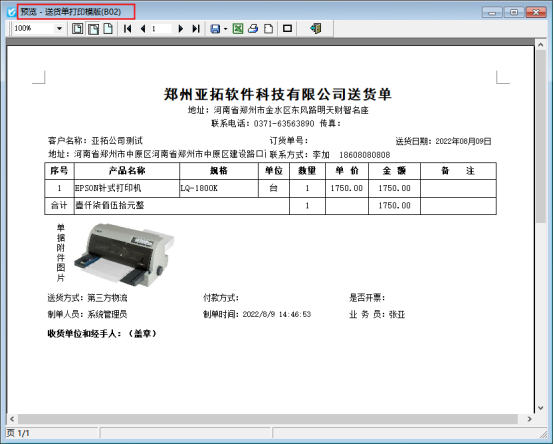 銷售出庫單附件圖片打印預覽情況如下圖所示: