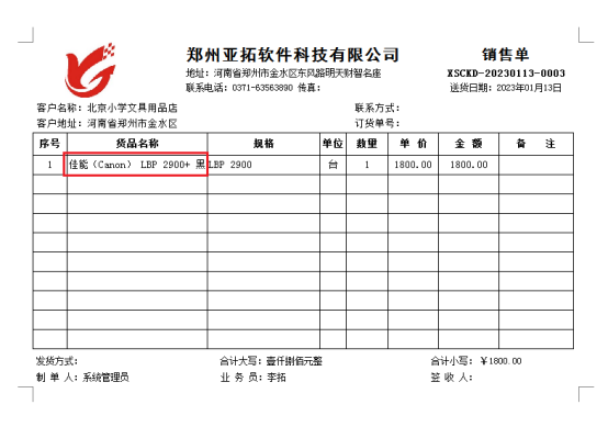 在功能導(dǎo)航窗點(diǎn)擊“業(yè)務(wù)處理”—》新開(kāi)送貨單,先新開(kāi)一個(gè)單據(jù),確認(rèn)開(kāi)單后點(diǎn)擊打印預(yù)覽,如果商品名稱文字過(guò)長(zhǎng)時(shí)打印會(huì)顯示不全,如下圖所示: