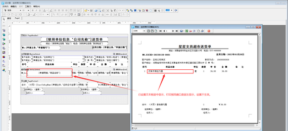 信管飛軟件支持自定義打印格式模板,部分用戶在設計打印格式模板時,可能會遇到如下問題,設置文本框居中顯示了,但是打印預覽時不生效,如圖所示。